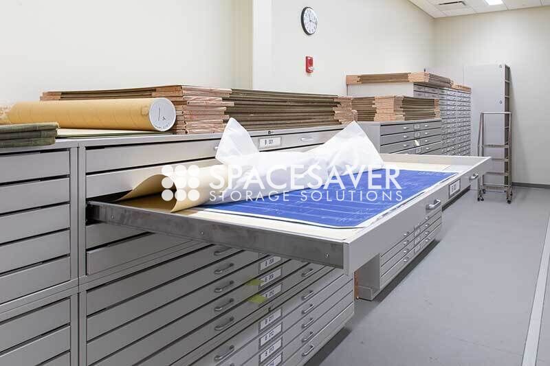 Built to protect your flat collections for the long term, Spacesaver’s archival flat file cabinets offer reliable performance and exceptional preservation. Each drawer glides effortlessly on stainless steel tracks and plated rollers, ensuring smooth operation year after year. A non-off-gassing powder-coat finish provides a clean, durable surface that supports conservation standards across museums and cultural institutions.