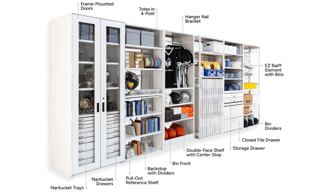 Its patent-pending clip system allows fast, tool-free shelf adjustments in ¾" increments while maintaining the strength and configurability of traditional systems.