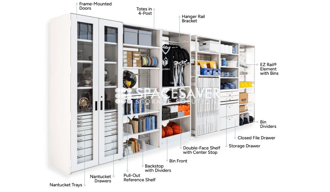 Engineered to uphold Spacesaver’s standard for long-lasting, high-performance systems, FreeSpan™ Shelving is built with robust structural components to provide secure, stable storage and display a broader range of materials. Optional components include our FreeSpan™ Shelf Stiffener for increased weight capacity, and FreeSpan™ Shelf Extender – designed to keep items from falling through to the next level of the system.