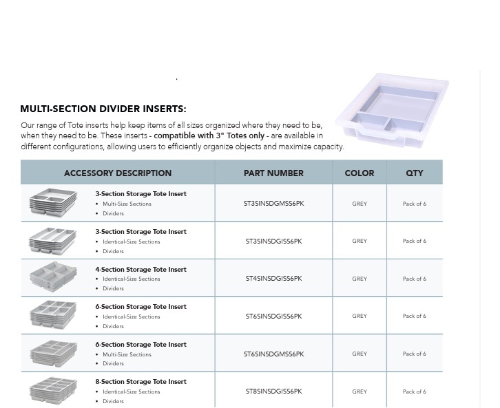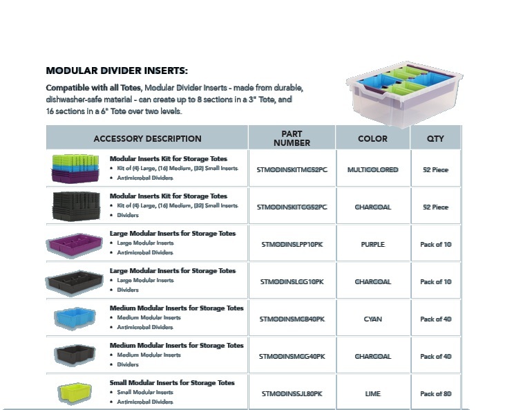 Supplies aren’t one-size-fits-all—and neither are these Totes. Add interchangeable accessories like divider inserts and lids to sort, separate, and safeguard your materials today… and easily reconfigure for tomorrow.