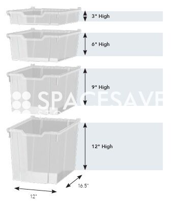 These Totes are ready for whatever you throw at them—available in four heights (3", 6", 9", and 12") and compatible with all 15" W and 18" D Spacesaver 4-Post Shelving. Mount them on Tote Rails or simply place them directly on shelves. In other words, they play nice with everyone.