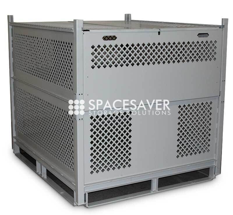 The Spacesaver Parachute Container is built for durability and ease of use. Its welded reinforced base, heavy-duty 11-gauge steel frame, and 12-gauge diamond-perforated panels provide long-lasting strength and ventilation. Rigging teams enjoy full access with top panels that lift and pivot completely out of the way—streamlining loading, inspection, and retrieval.