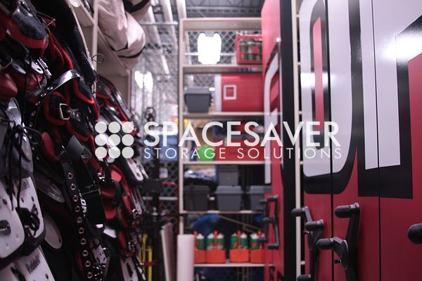 After defining your zones, Spacesaver Storage Solutions helps you choose the right high-density mobile shelving system to maximize your space and flexibility. These systems allow you to store more gear in less square footage while improving organization, accessibility, and security.