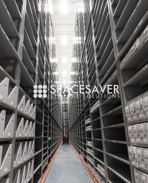 Spacesaver’s high-bay shelving systems are engineered specifically for off-site archival library storage, delivering: